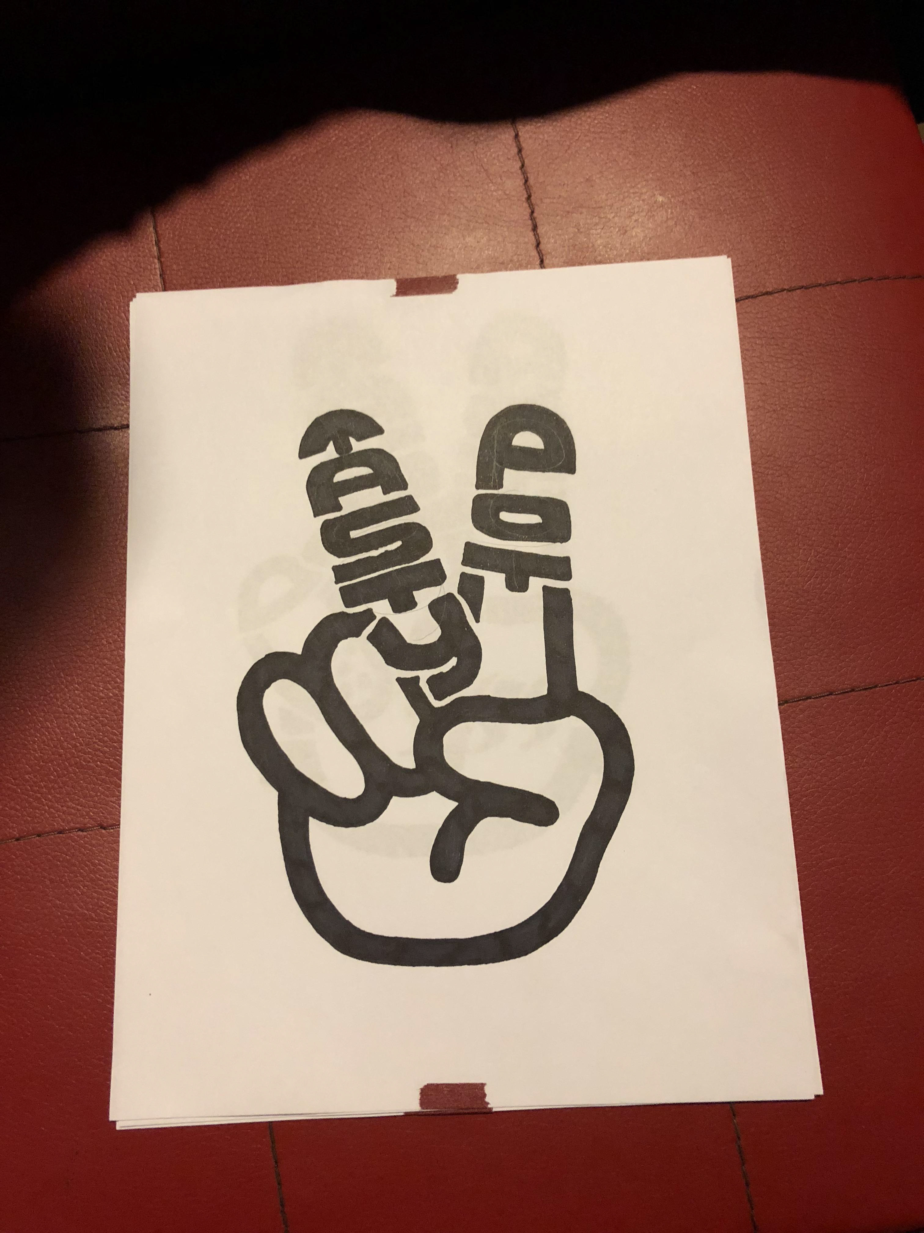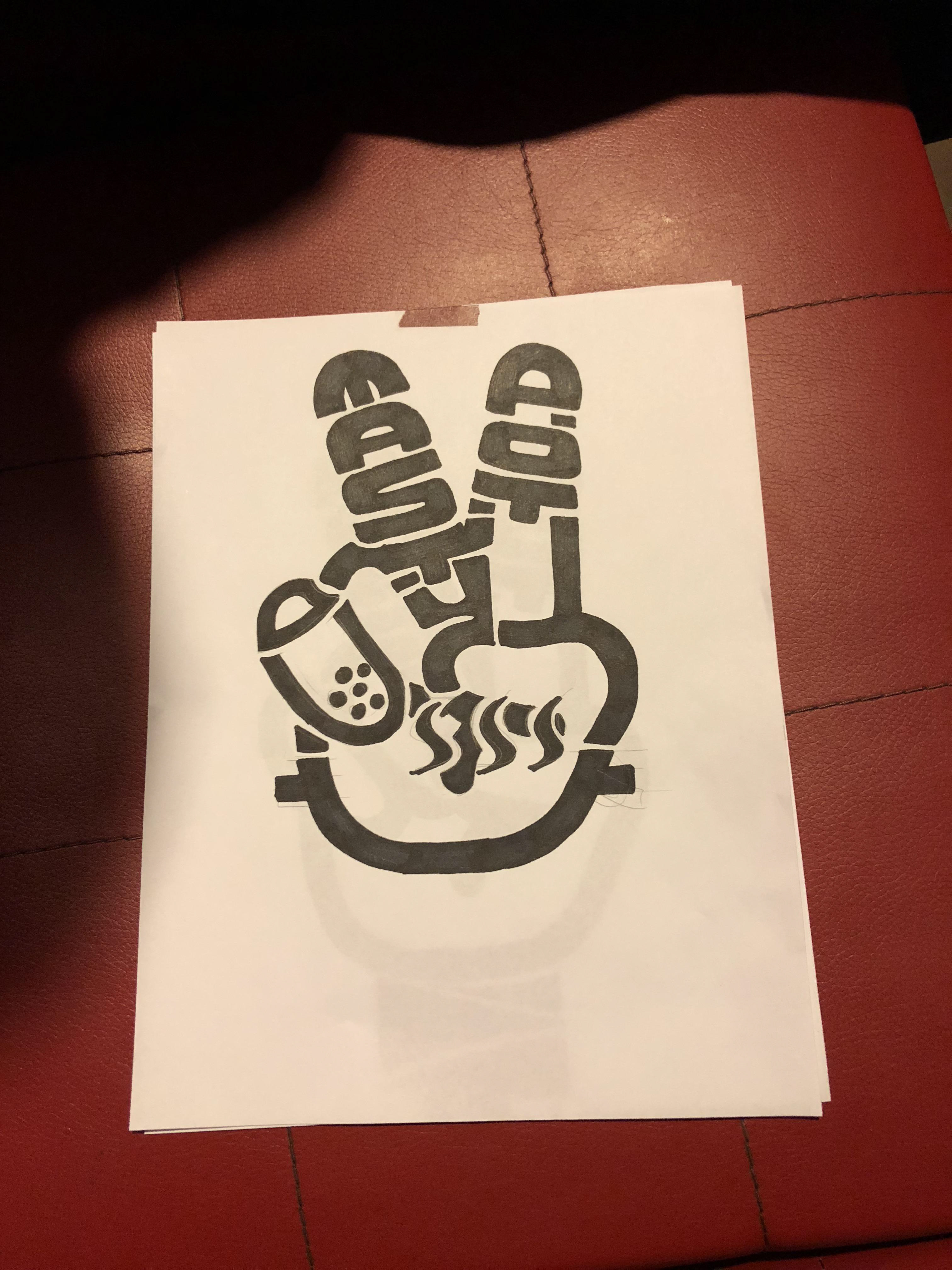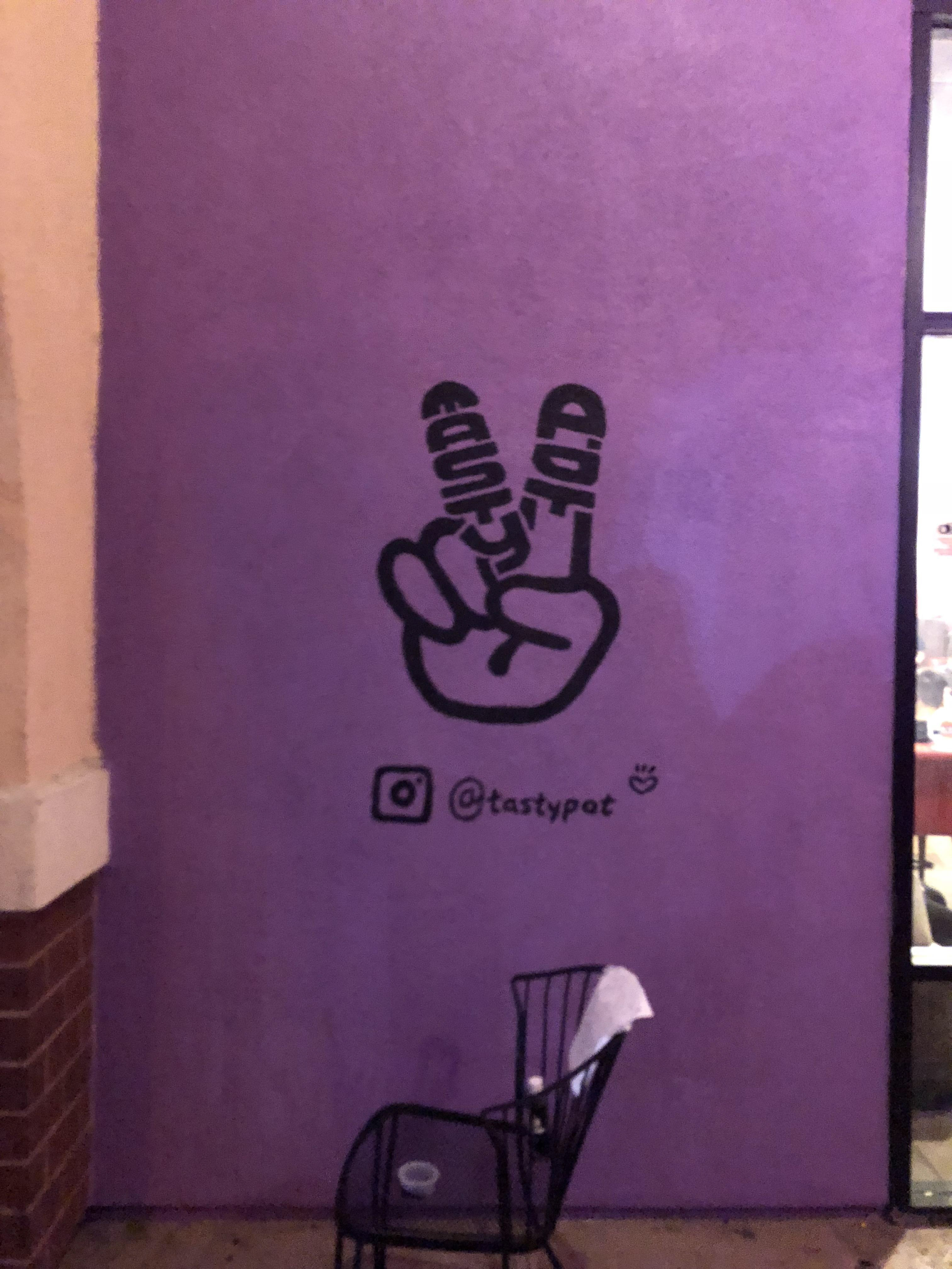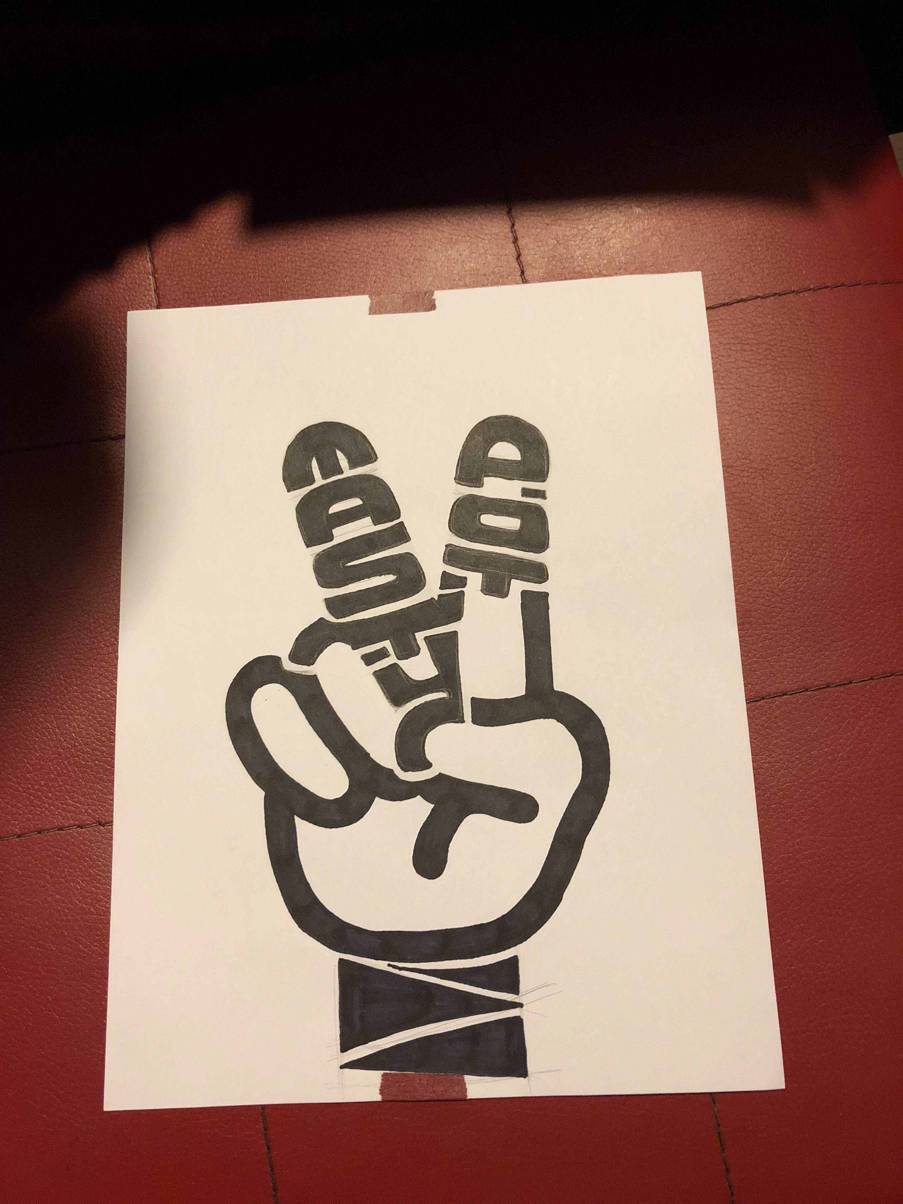 ⇧ Before I started to work on the wall, I got to outline the design first. These were the three designs I made at the beginning. It was a victory gesture, where I wanted to give our customers a image that having hot pot is a victory. In the gesture, I inserted the brand name Tasty Pot into the fingers to make it stand out.