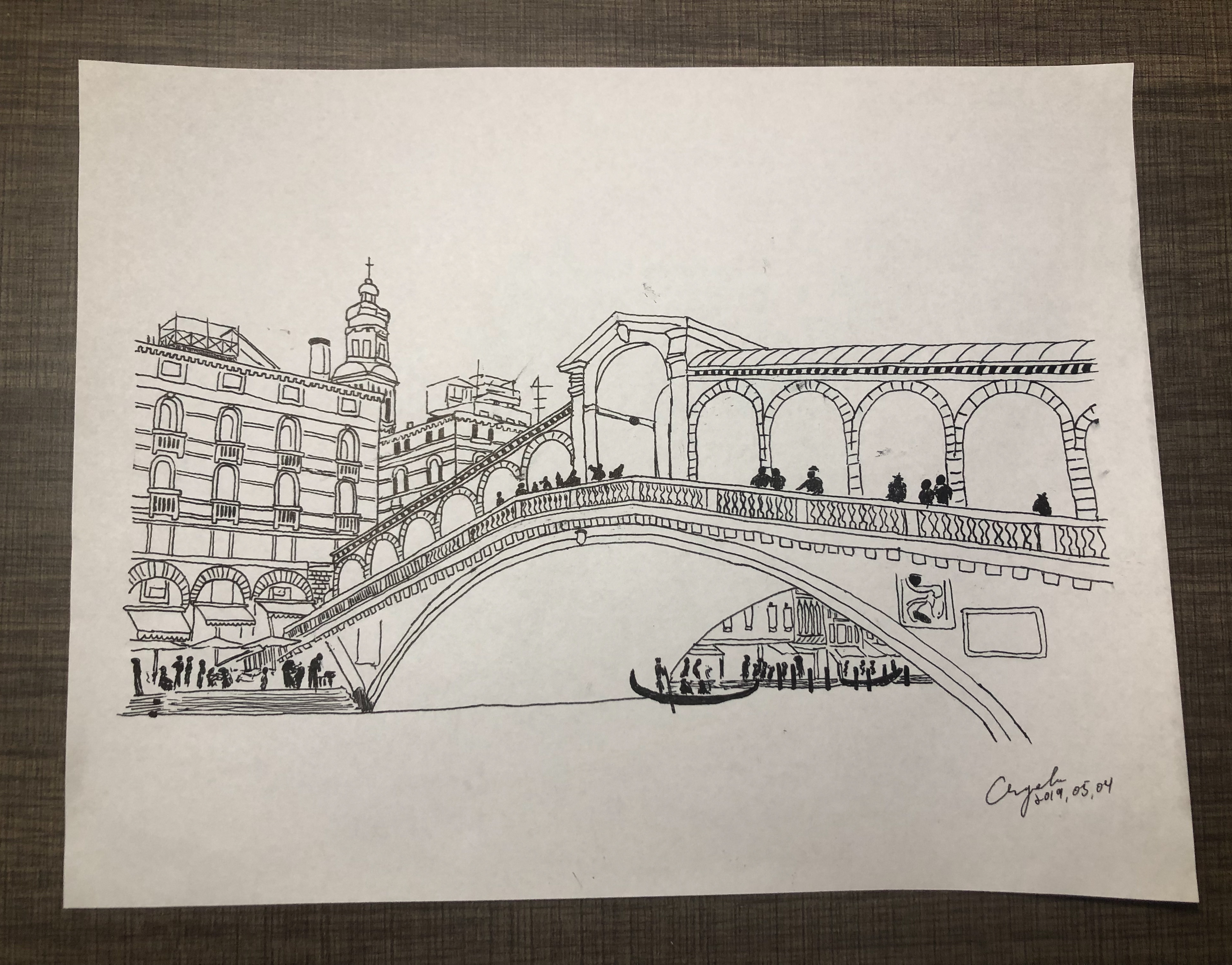 This is one of the quick sketch I did with bridge in Venice. It was sketched with black pen on regular white paper.